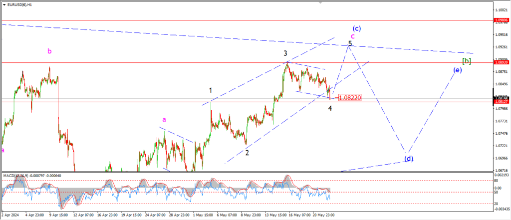 Watch for wave ‘4’ of ‘c’ to break 1.0812 and then turn higher into wave ‘5’.