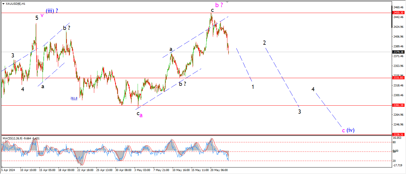 Watch for wave ‘1’ of ‘c’ to continue lower in five waves and break 2330.