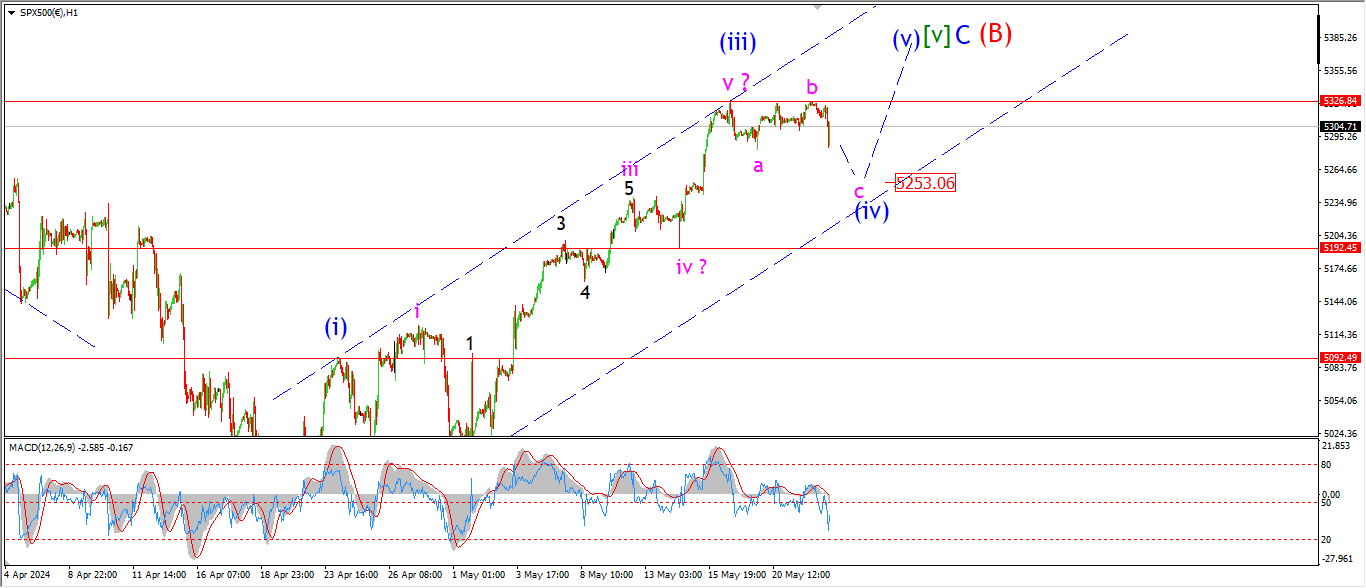 The reversal off the highs is suggesting that the price has now turned into wave ‘i’ of (i) today.
