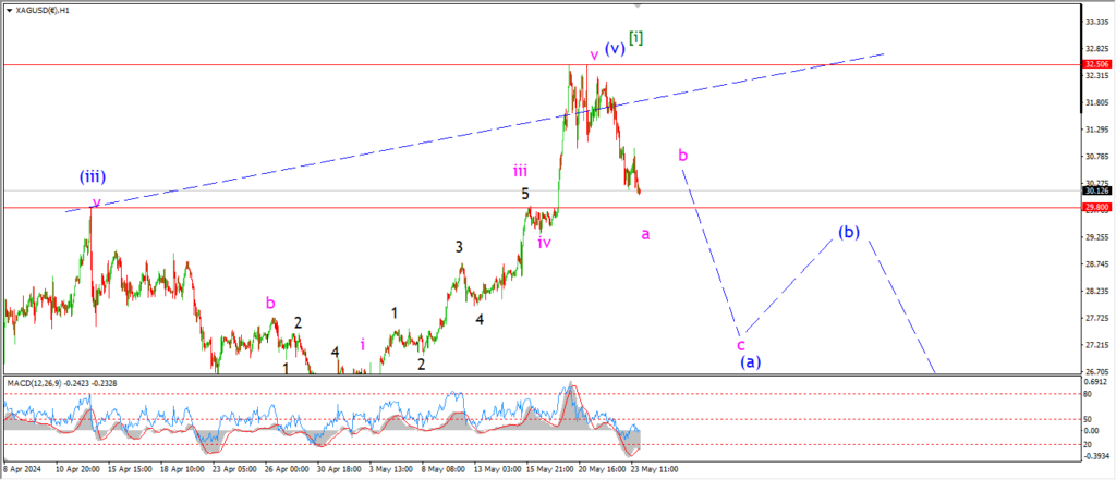 And the initial decline in wave ‘a’ pink should find support near that support at 29.80.