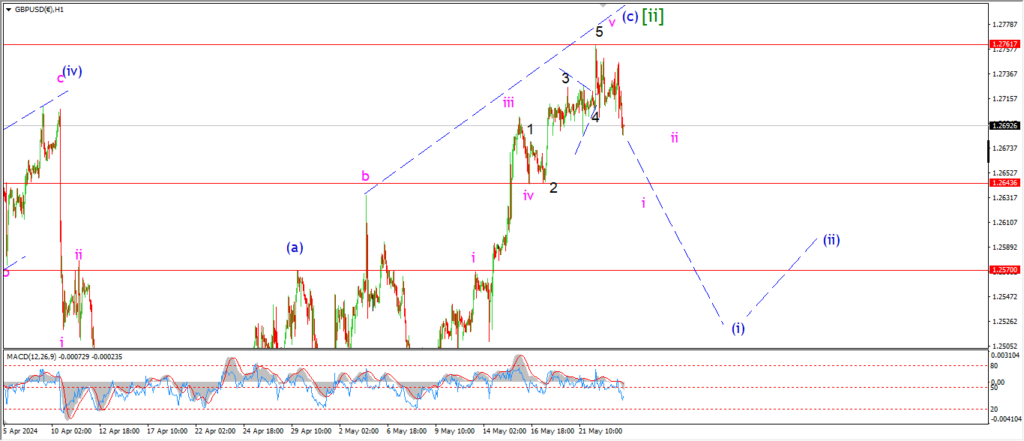 I am looking for a break of the wave ‘iv’ low at 1.2643 to signal wave ‘i’ is in play here.