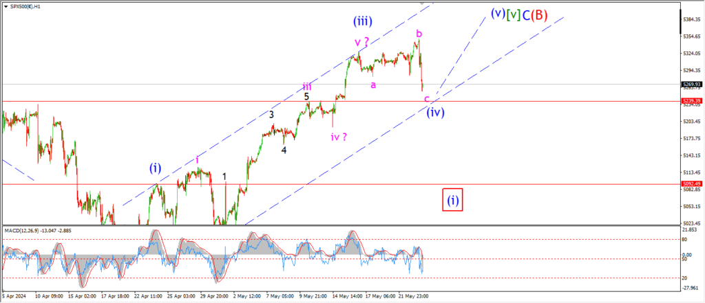 A sharp turn lower came in the S&P also today but I am not jumping on the wave (i) decline idea here yet.