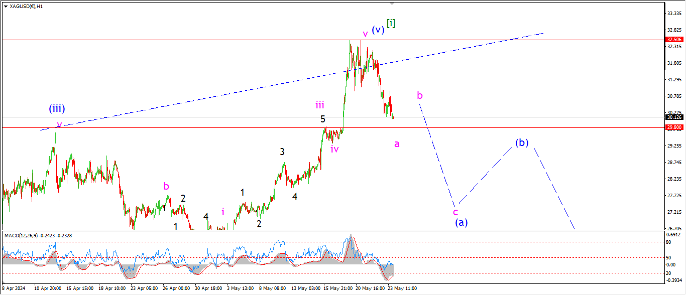 And the initial decline in wave ‘a’ pink should find support near that support at 29.80.