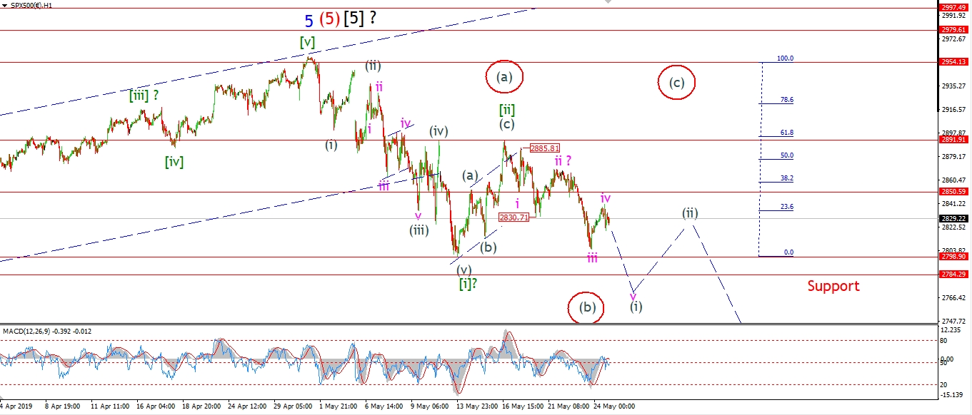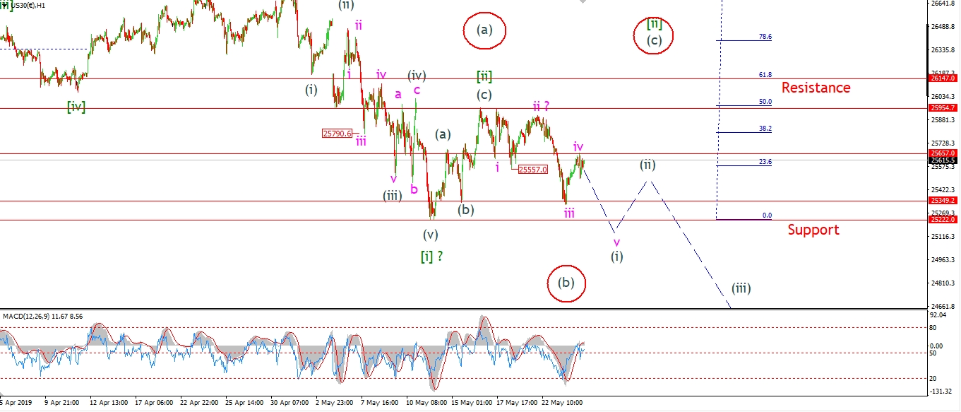 The DOW has rallied in wave ‘iv’ today and reached right back towards the wave ‘i’ low at 25657.