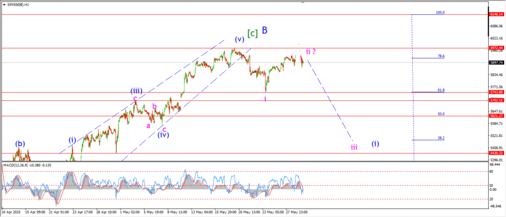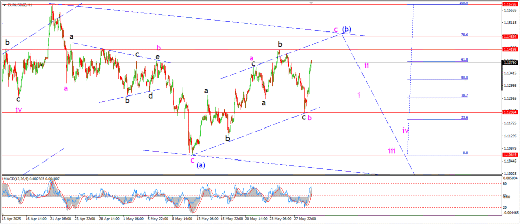 Watch for wave ‘iv’ to complete early in the session and then turn higher into wave ‘v’ again.