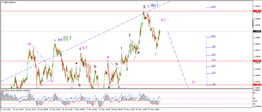 Watch for wave ‘ii’ to complete below 1.3590 at the wave (b) top.