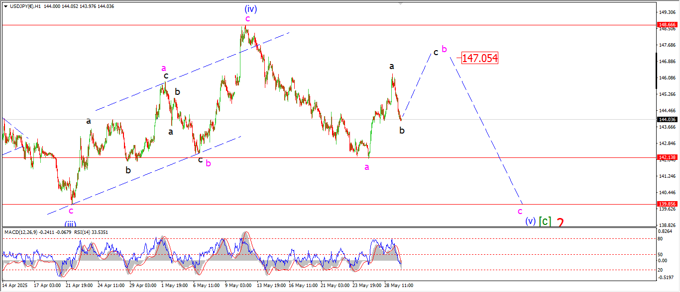 USDJPY turned lower into wave ‘b’ today which puts this new pattern on track again.