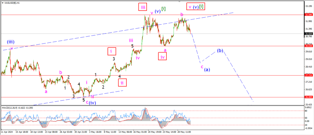 and now I am looking for a five wave decline into wave ‘c’ over the coming few days.