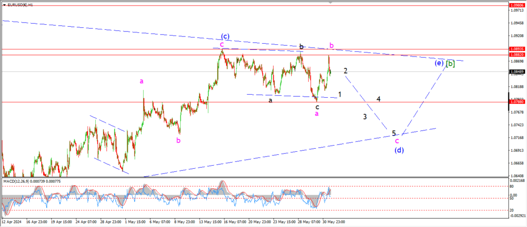 and wave ‘c’ down is still expected to drop in five waves towards 1.0750 again over the next few sessions.