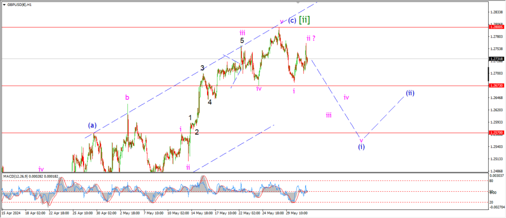 This count calls for a five wave decline in wave (i) to break 1.2600 over the coming days.