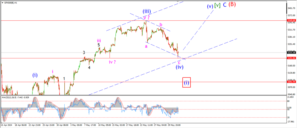 Watch for that wave (i) support at 5090 to hold and wave (v) of [v] to push back to a new high.