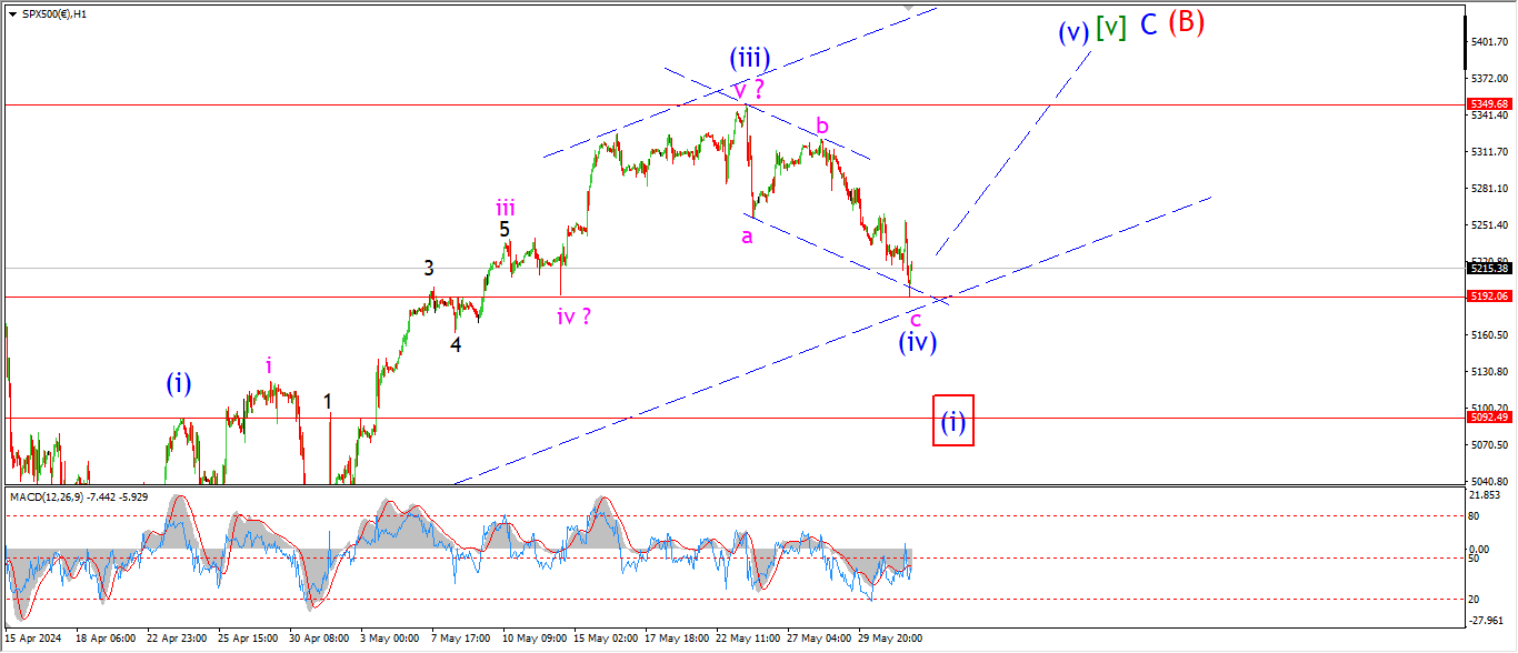 Watch for that wave (i) support at 5090 to hold and wave (v) of [v] to push back to a new high.