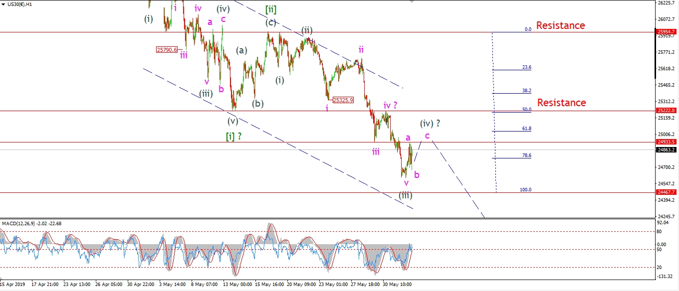 The DOW rallied this morning and hit the initial target area for wave (iv) at 24933,
