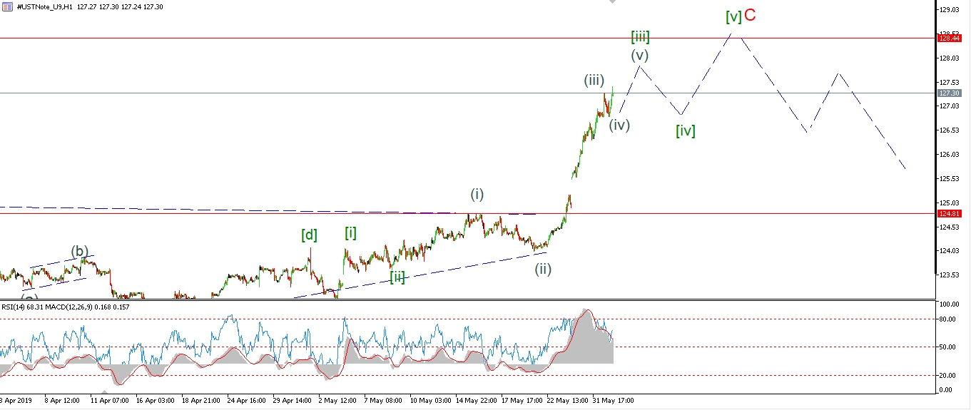 Watch for wave (iv) to complete and wave (v) to begin the push towards 128.00 again.