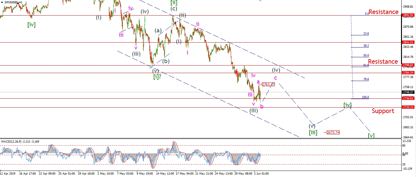 The S&P has made a new low this evening which has broken Fridays wave (iii) low.