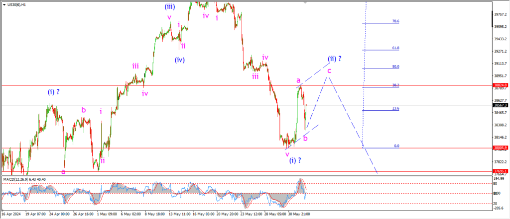 Wave ‘c’ must now rally back above the wave ‘a’ high at 38824 at a minimum.