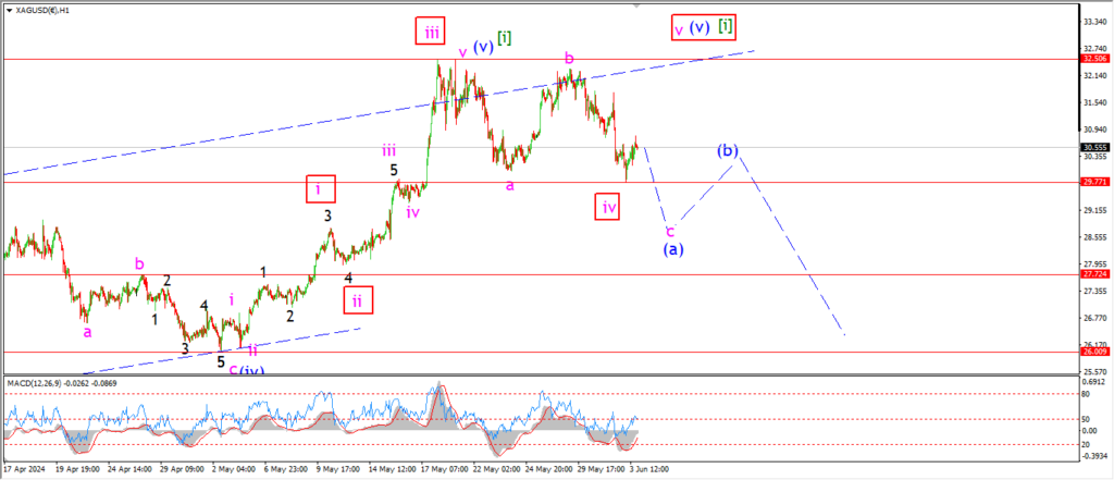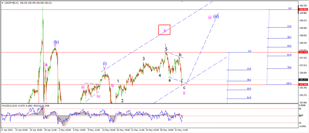 A break of the wave ‘i’ high at 157.72 again will signal wave ‘iii’ is underway.