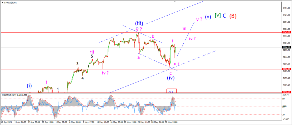 WAtch for wave (iv) to hold at 5190 and wave (v) to continue higher in five waves as shown.