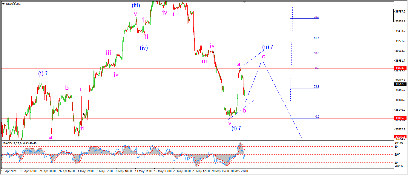 Wave ‘c’ must now rally back above the wave ‘a’ high at 38824 at a minimum.
