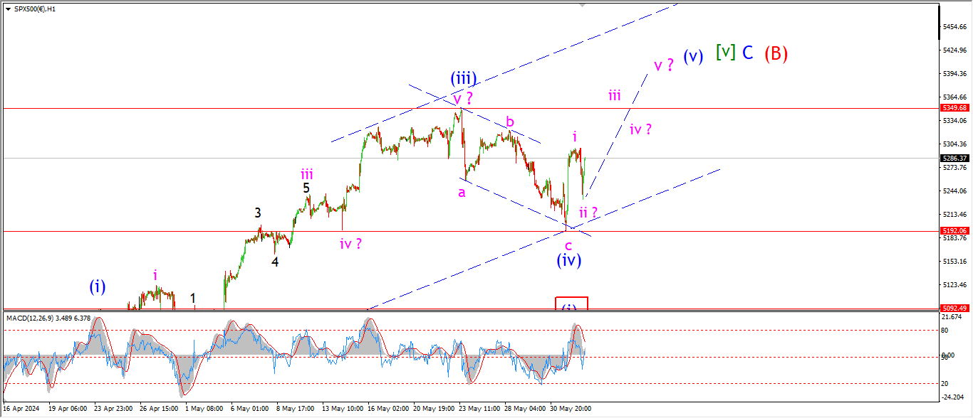WAtch for wave (iv) to hold at 5190 and wave (v) to continue higher in five waves as shown.