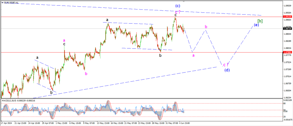 And we should see a three wave decline into that support at 1.0788 in wave ‘a’ of (d).