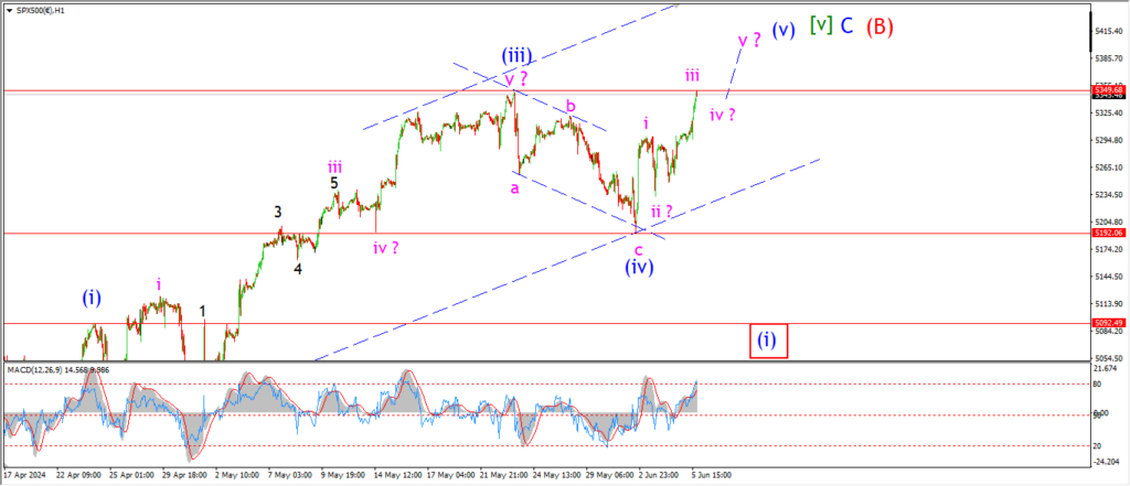 Wave (v) will trace out five waves up and top out probably above 5400 at this stage.