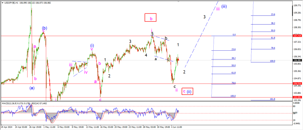 Wave ‘1’ and ‘2’ of ‘iii’ must now create a bullish higher low above that wave ‘ii’ low at 154.51.