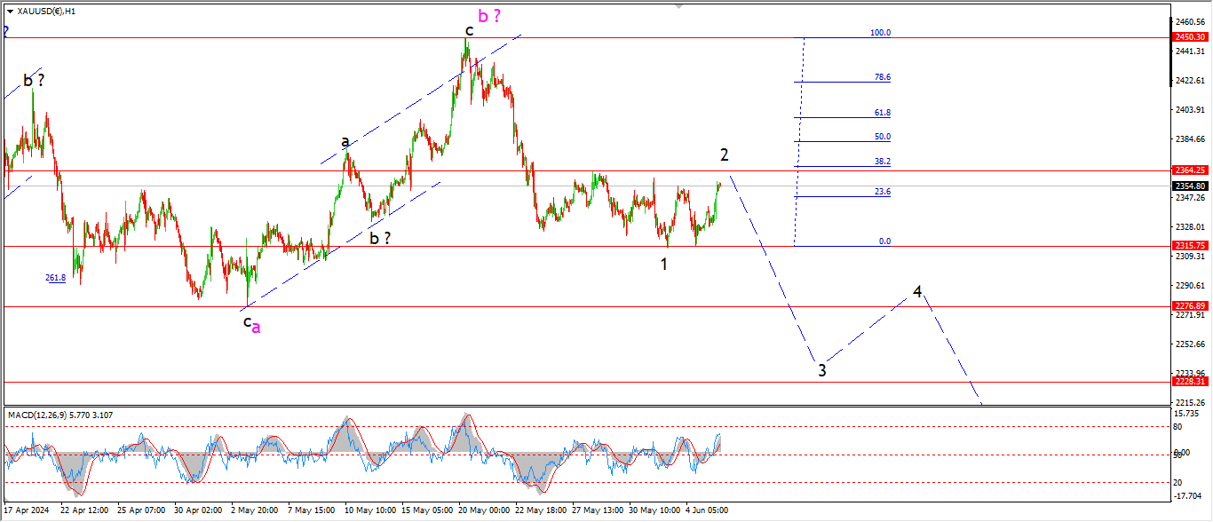 Silver has traced out three waves down in wave (a) at this weeks lows.