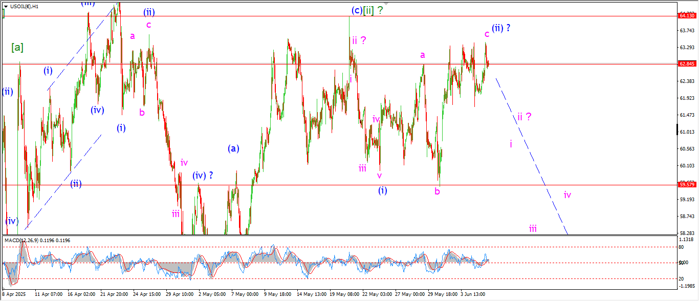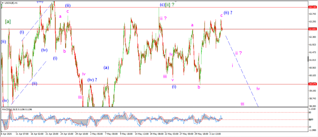 Watch for wave ‘i’ of (iii) to take the price lower with a drop towards 60.00 again.
