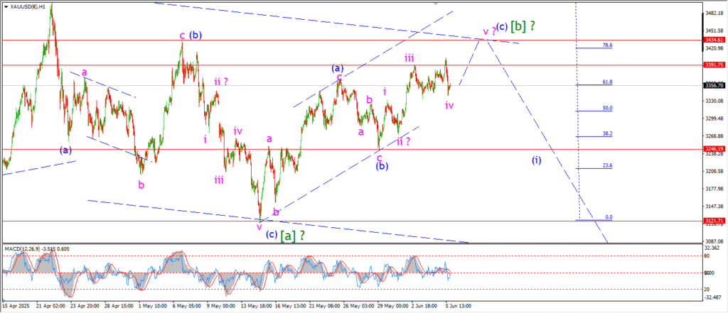 If the price breaks down below 3246 again that will be a signal that wave (i) of [c] is in play.