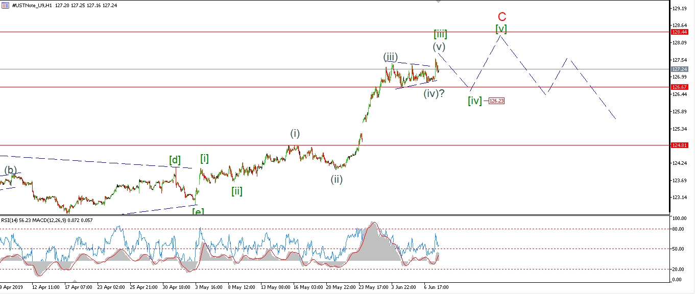 A break back below 126.67 will signal that wave [iv[ has begun.