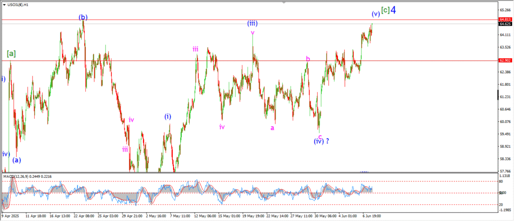 Wave (v) of [c] has managed to break 64.00 today as the pattern nears its end in wave ‘4’ again.