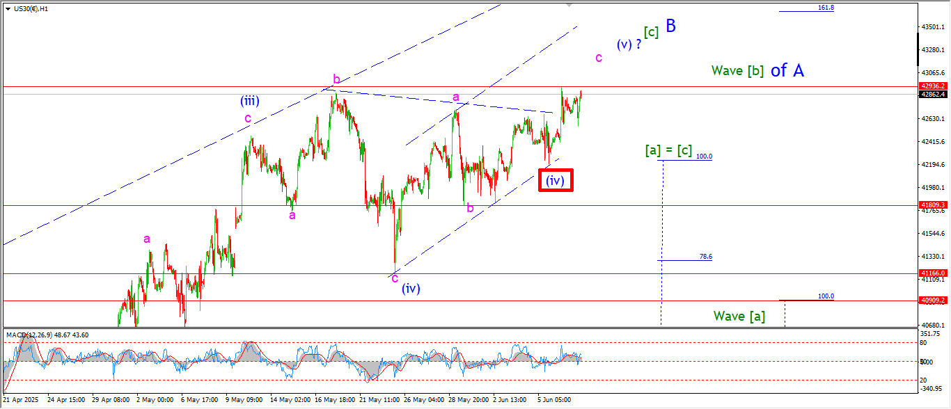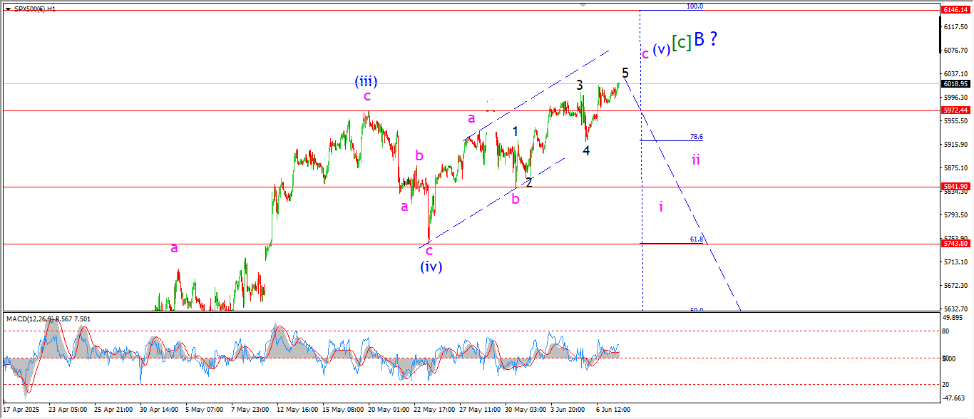 Watch for wave ‘i’ to turn lower with a drop below the wave ‘b’ low at 5840.