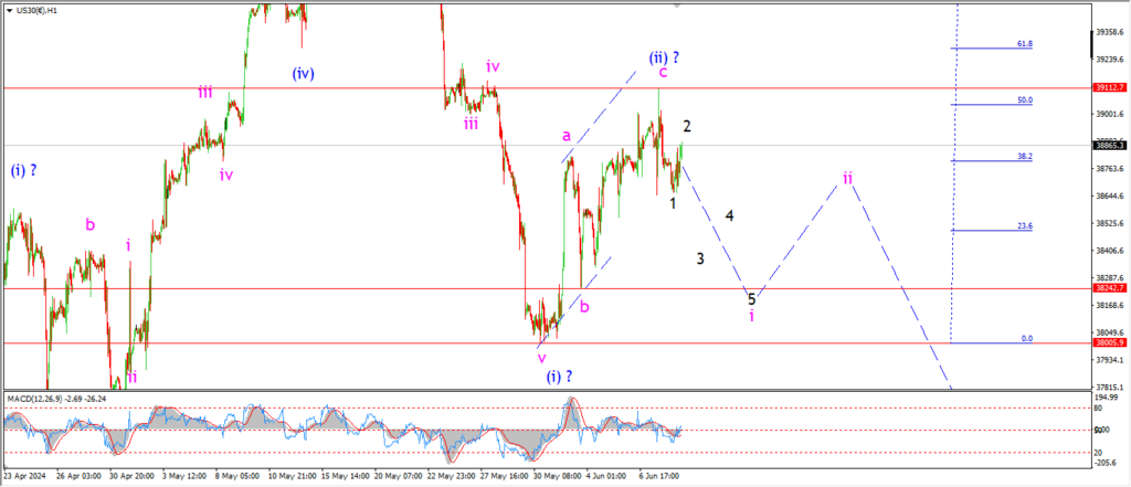 The Dow is holding below the recent highs again today and that opens up the possibility that wave (ii) is complete.