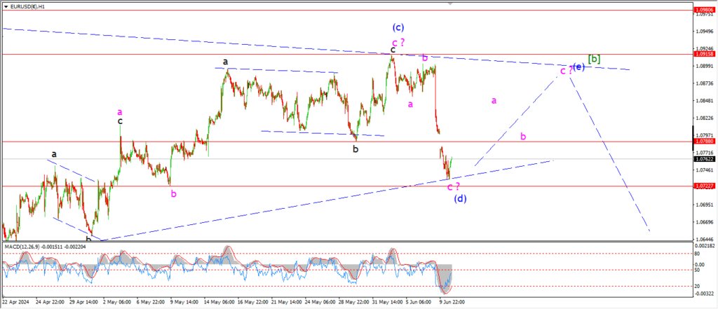 And in this scenario wave (e) should now track higher in three waves towards that upper trend line again at 1.0850 or so.