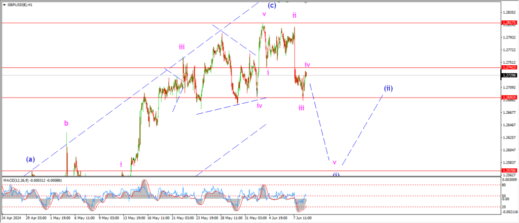 Watch for wave ‘iv’ to hold below the wave ‘i’ low at 1.2742.