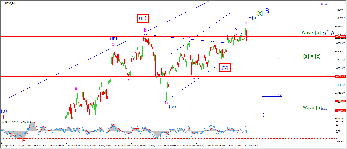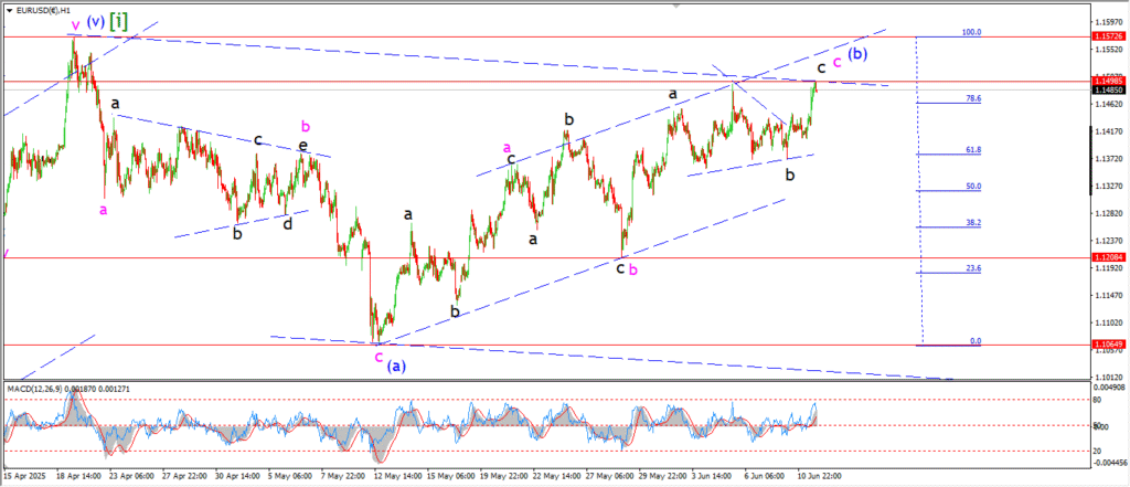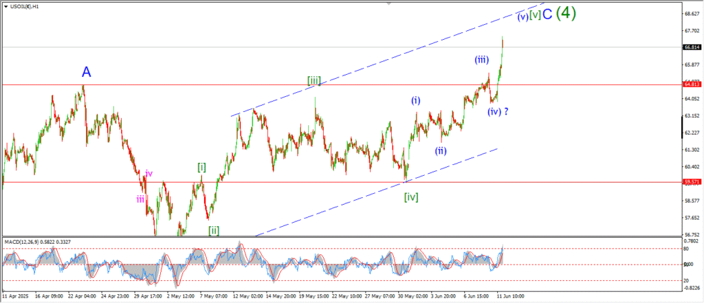 The hourly chart shows the rally within wave ‘C’ of (4).