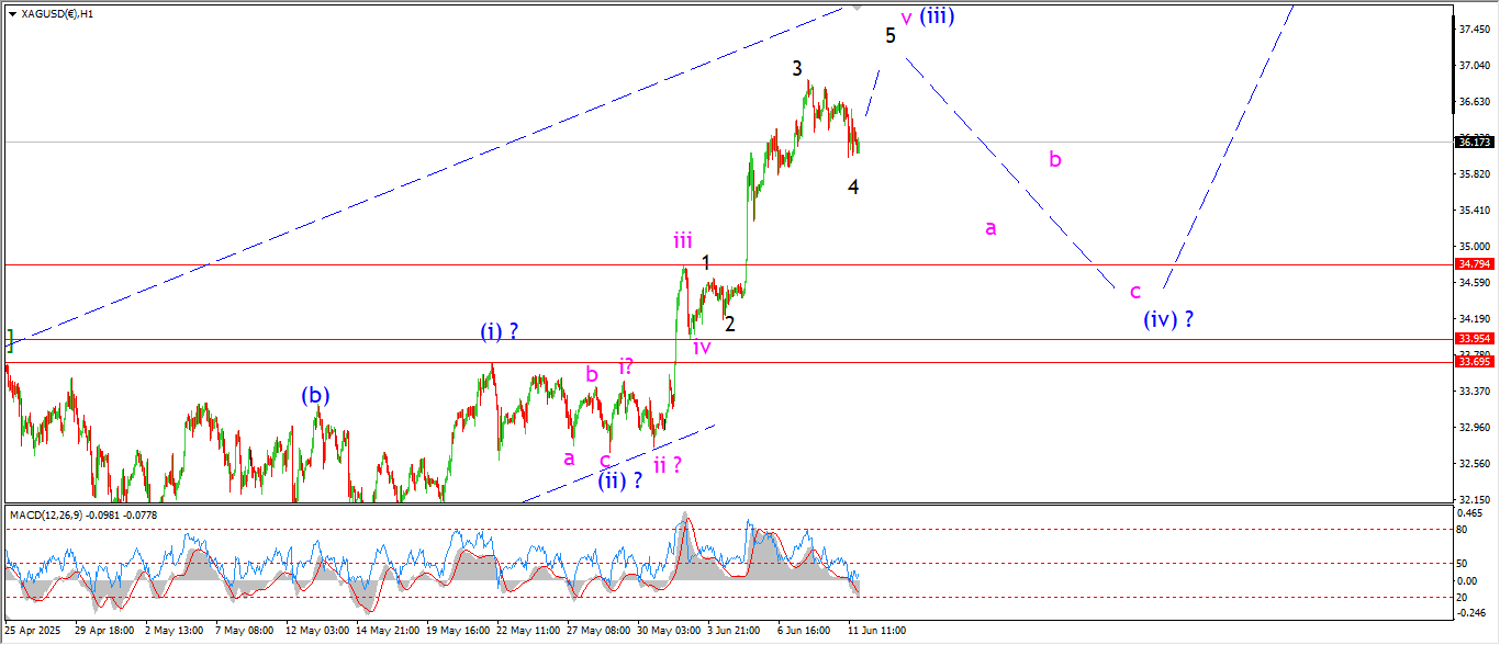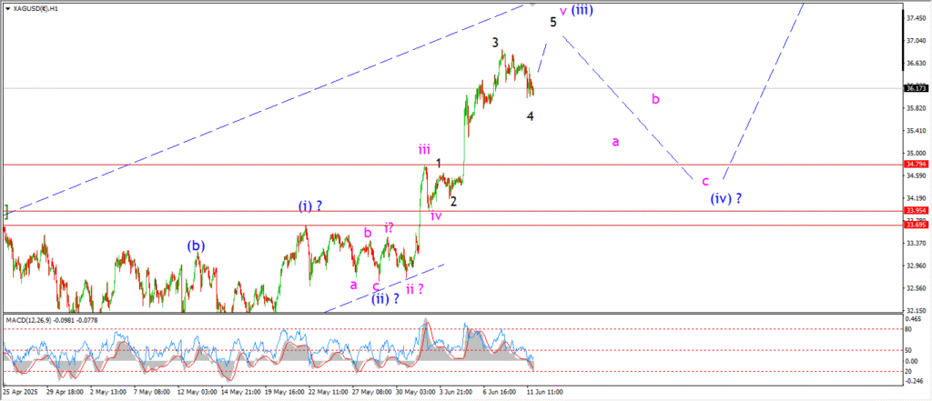 If we see a break of 34.75 again that will signal wave (iv) is underway.