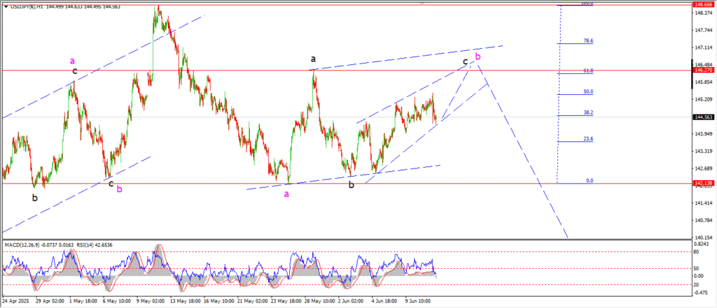 Watch for wave ‘c’ to push up to 146.27 once more to complete the pattern,
