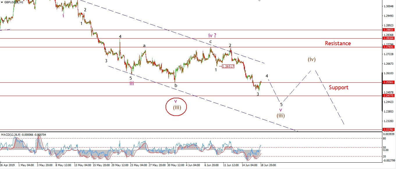 and wave ‘5’ of ‘v’ sill drop again with a break of the lower support at 1.2477 on the cards.