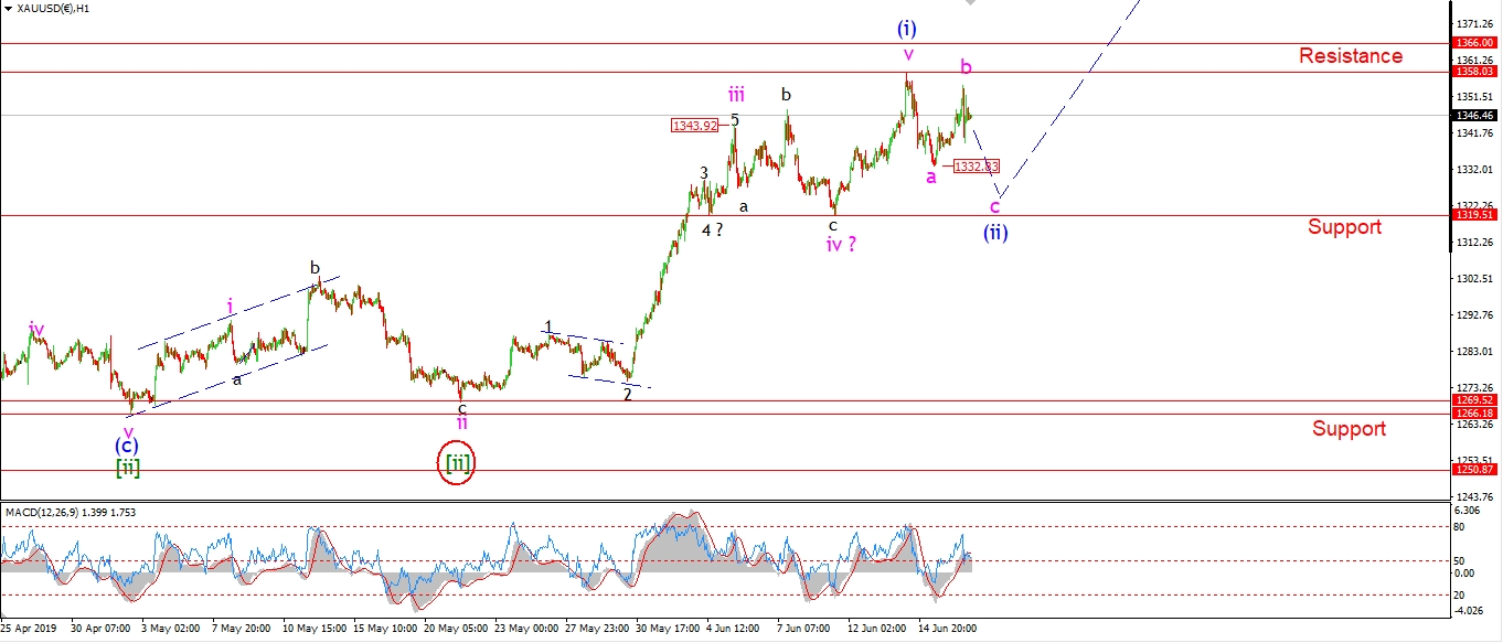 Support at 1319 forms the lower end of the target range for wave (ii).