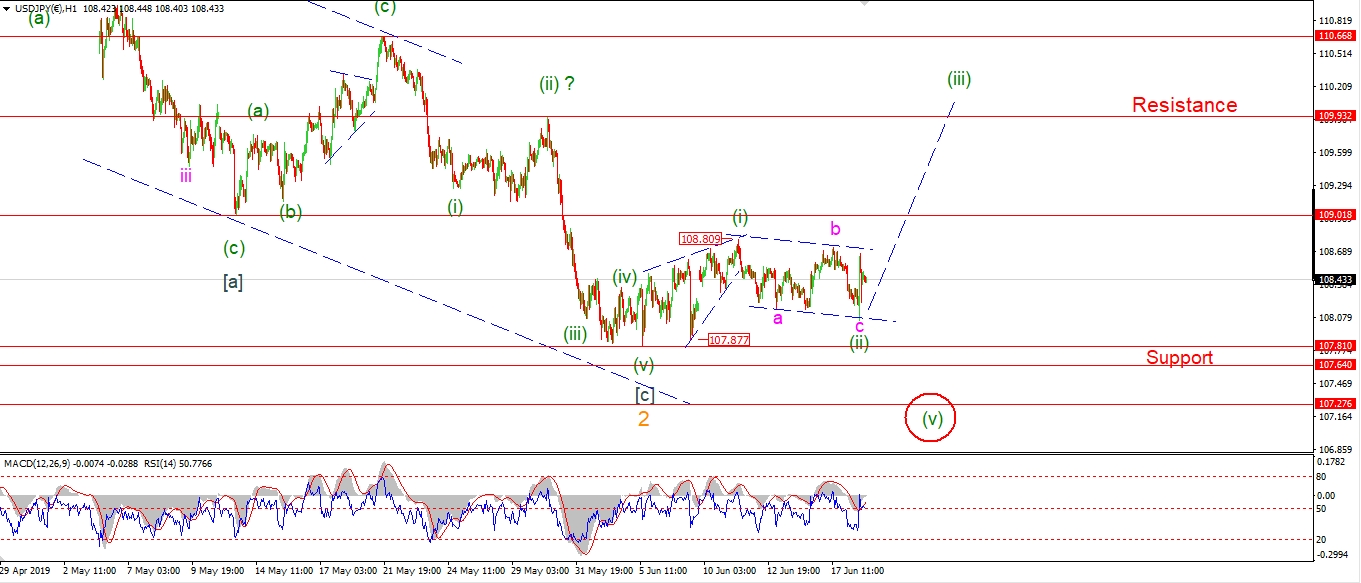 Watch for wave (iii) to push above 108.80 and and confirm the bullish count.