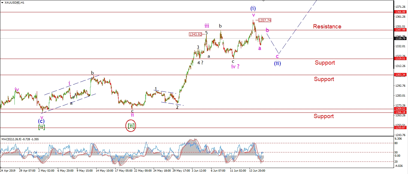 The price retraced higher in three waves today labelled wave ‘4’ of ‘i’.