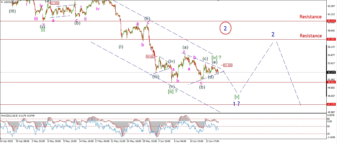 Wave ‘2’ should correct higher up to resistance at 57.00 again in a three wave form.