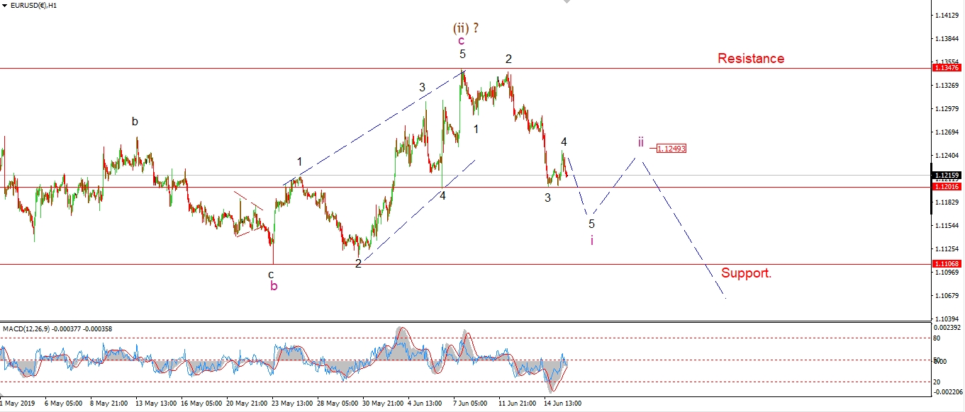 Wave ‘5’ of ‘i’ is expected to push below 1.1201 at a minimum before wave ‘i’ completes.