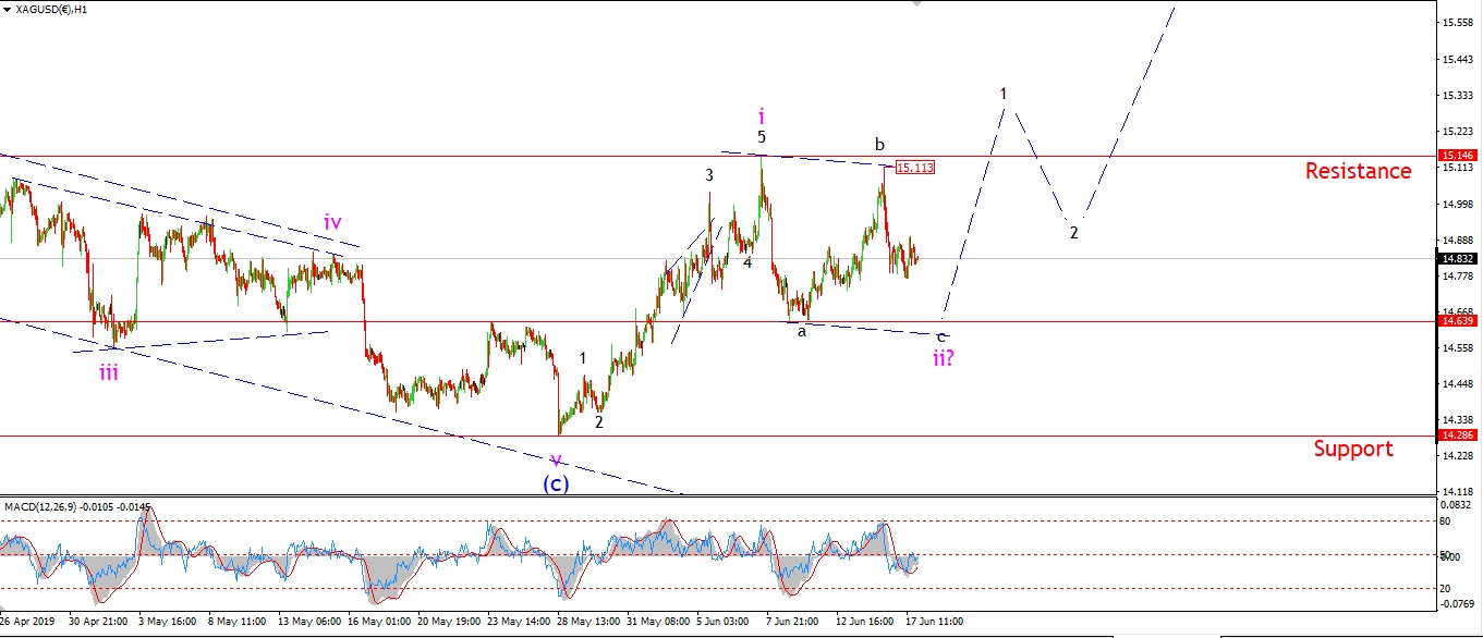I still expect one more drop to 14.63 to complete a three wave pattern in wave ‘ii’.