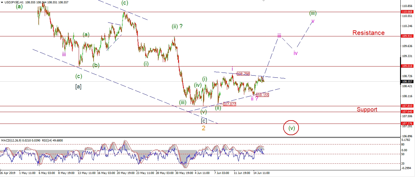 USDJPY is rising today but without breaking 108.79 at the wave ‘i’ high yet.