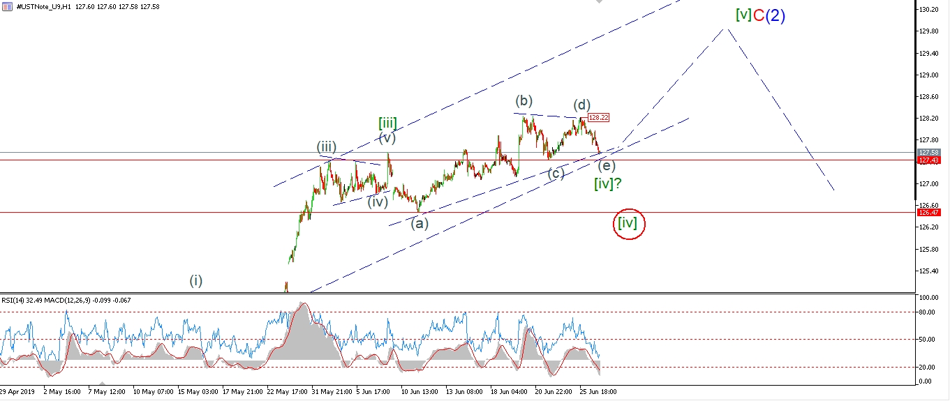 Watch for wave [iv] to complete and wave [v] begin with a rally above 128.22.