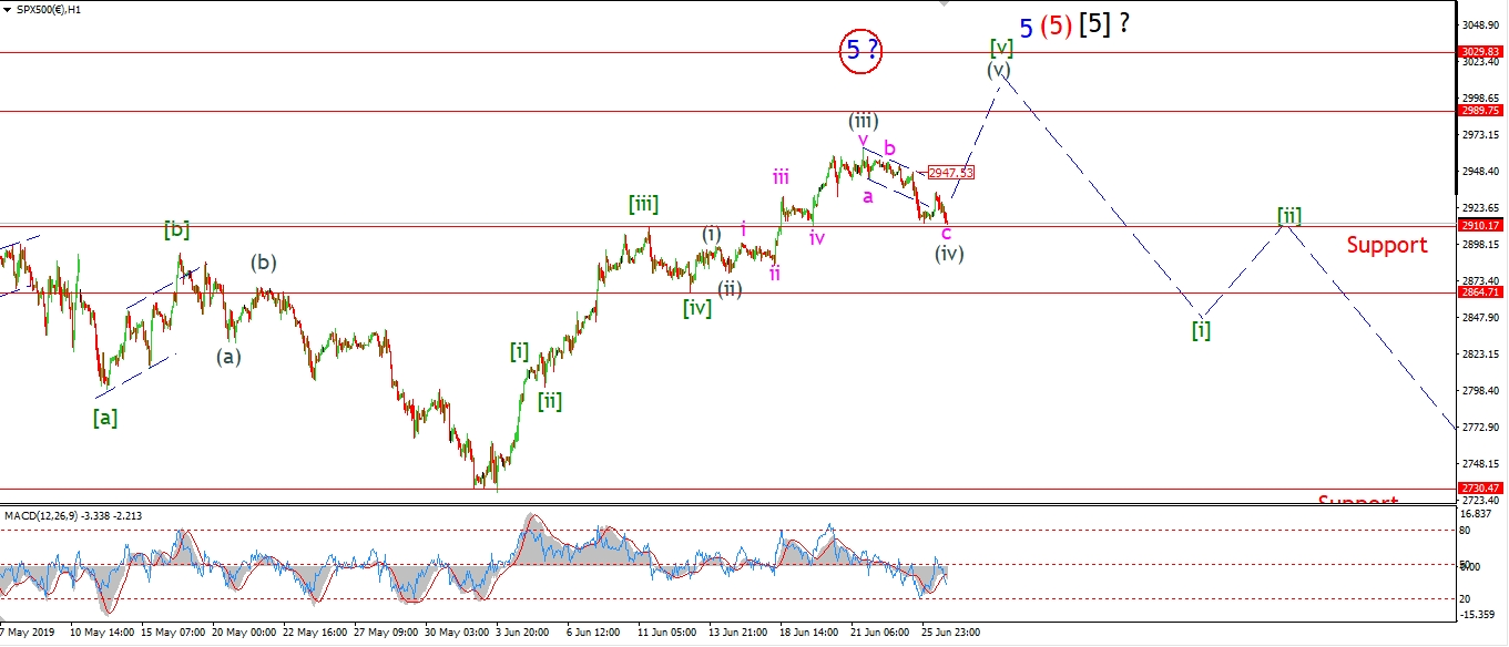 Watch for wave (v) of [v] to begin with a break of 2950.