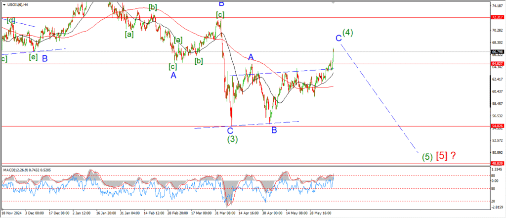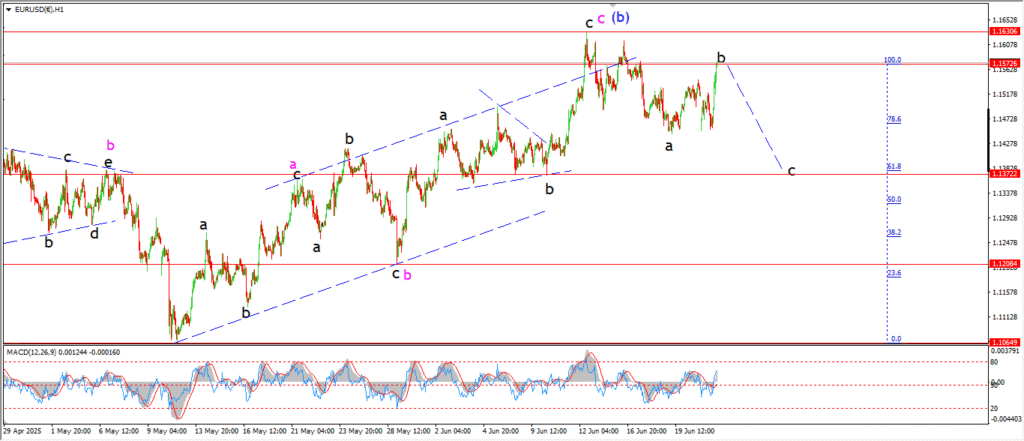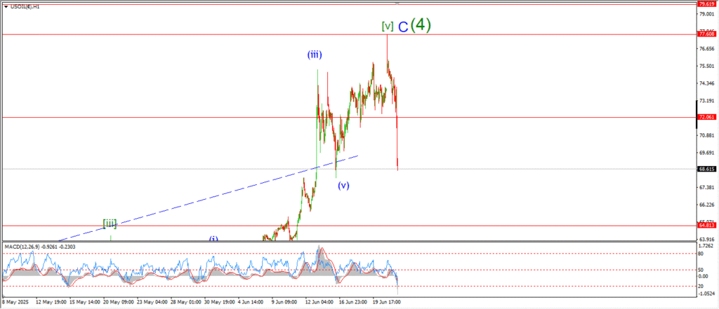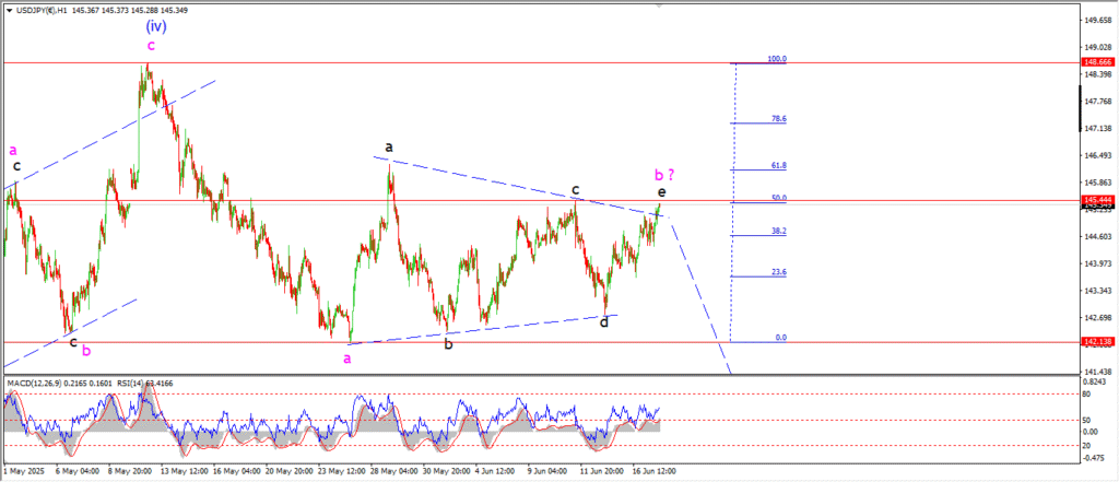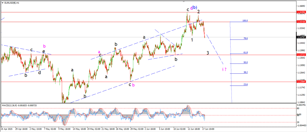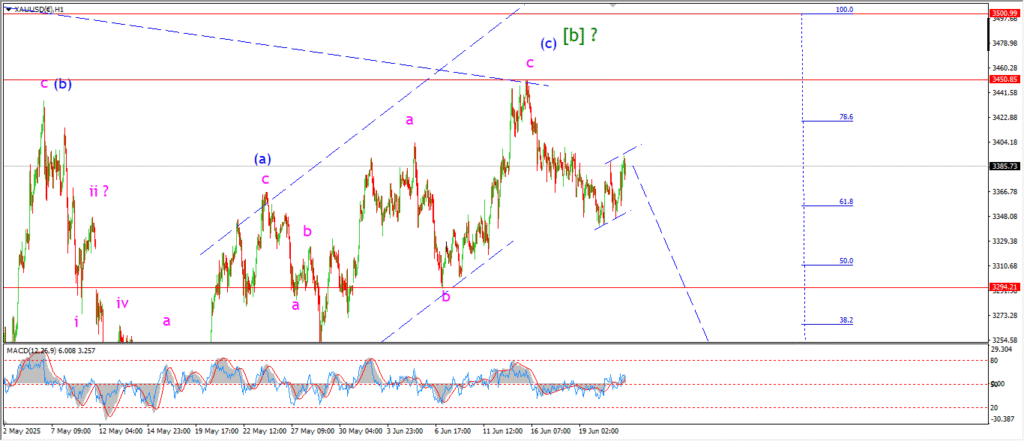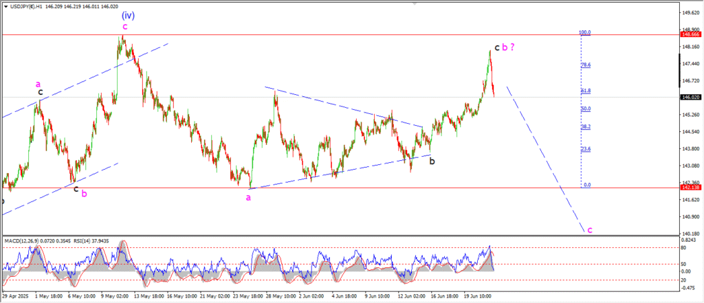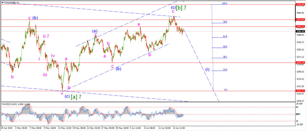 The action today looks like there is an impulsive move lower coming into wave ‘c’ this week.